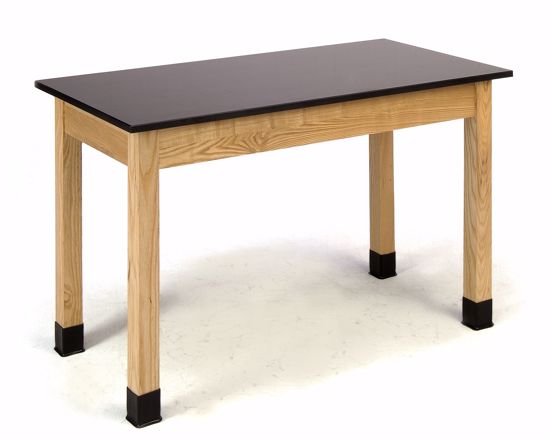 The brand-new Phenolic Science Lab Tables will have "perfect chemistry" with any science classroom. These paragons of endurance are built with strong ash frame and side panel aprons beneath a solid, black, phenolic resin tabletop with a matte finish. The work surface is crack-resistant and can be modified using carbide-tipped tools. It is impervious to extreme cold, heat up to 275° F as well as damage from virtually any chemical, acid or possibly corrosive substance that may be found in a laboratory setting. Robust legs are spot-welded to the frame with metal-on-metal double-bolts on 13-gauge steel corner braces for maximal stability. The PSLT's feet are outfitted with rubber liquid-protective boots and adjustable glides for accurate floor leveling. This product meets or exceeds SEFA environmental industrial standards.