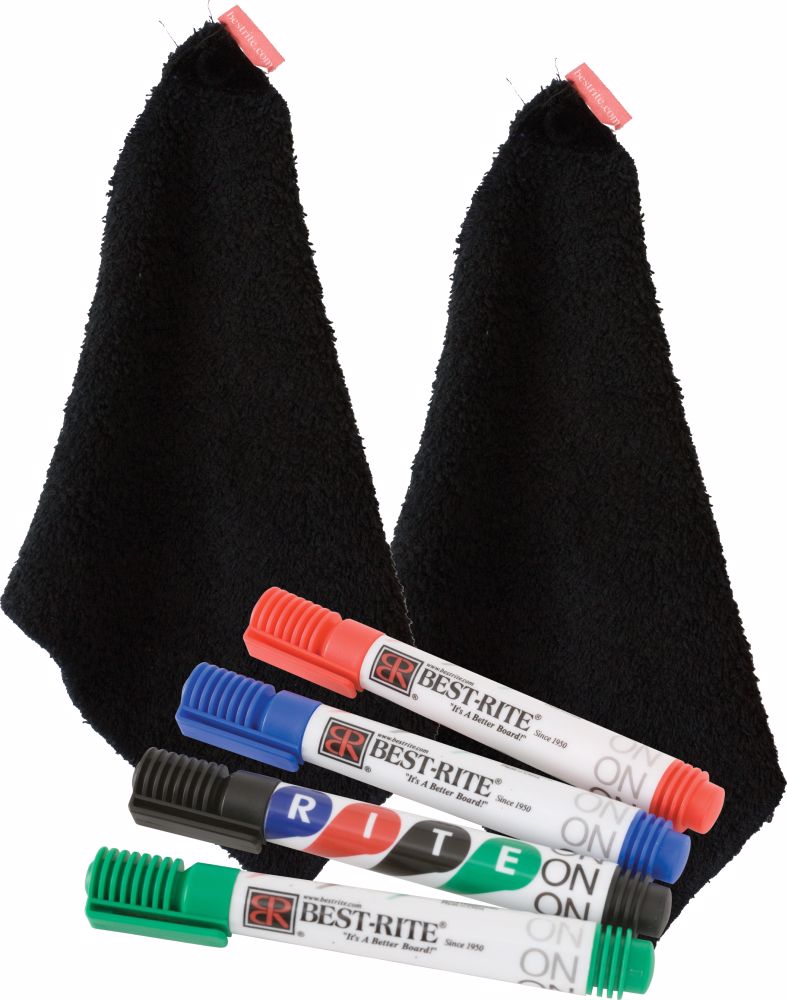 Dry Erase Board Accessory Kit - includes one pack of Rite-On Markers (four total), and two Magnetic Eraser Cloths.