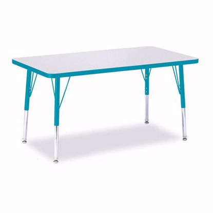 The perfect table for any occasion. Accommodates up to 4 chairs. The legs adjust from 20” to 31” high, are 2” thick, and feature heavy-duty casters. Freckled gray tabletop with blue TRUEdge and gray mobile legs.