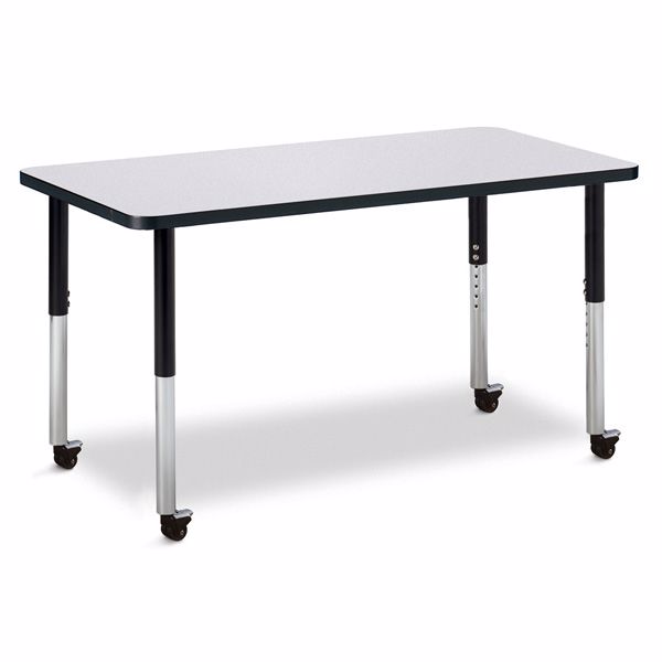 Berries® Rectangle Activity Table - 24" X 48", Mobile - Gray/Black/Black