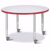 These round tables are excellent for allowing children to interact with each other during projects. Accommodates up to 4 chairs. The legs adjust from 20” to 31” high, are 2” thick, and feature heavy-duty casters. Blue tabletop with black TRUEdge, black le