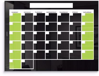 Stay on top of your busy schedule with the Black Magnetic Glass Dry Erase Monthly Calendar. Excellent time management tool in modern and stylish magnetic black glass dry erase surface. Glass provides an ultra smooth writing and erasing surface. Steel backing allows magnets for ultimate versatility. Includes white chalk pen and set of rare earth magnets. Keyhole mounting system for clean lines with no visible hardware.