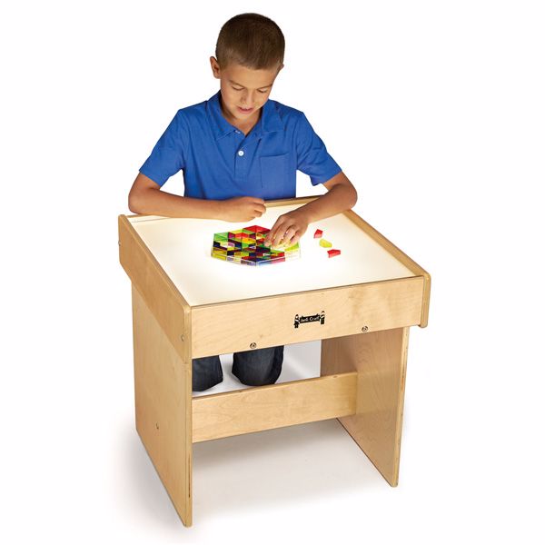 The Light Box Table makes it easy to explore colors or trace and is perfectly sized for places where space is limited. Plus, the legs can be easily removed so that it can be used as a tabletop unit. Designed to fit four Prism BrickĀ® bases (sold separately) for brick play. It features a super-strong acrylic top that evenly distributes light with reflective panels. The LED lights are energy-friendly, built to last (rated for up to 50,000 hours), and are ETL listed for use in the US and Canada. Five-foot power cord plugs into a standard 110 volt outlet. Meets 16 CFR 1505.