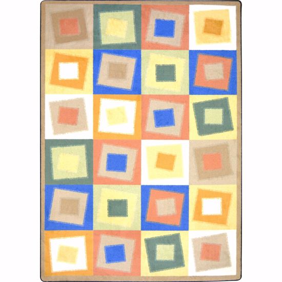 This unique carpet with slightly off-balance squares will work equally well as an accent rug under a coffee table or a cool place for kids to "kick back." Color options define the mood for fun or sophistication.