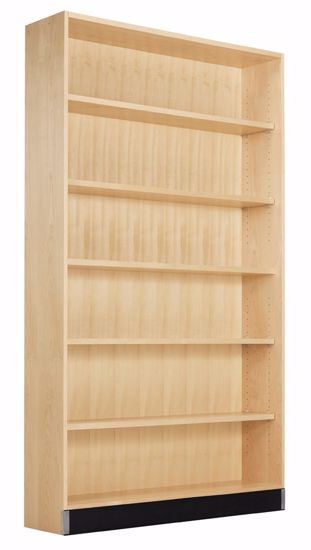Constructed of select hardwood and veneers using dowel construction reinforced with glue and screws. Available in maple or oak (shown). It is 84"H with four adjustable shelves, two fixed.