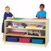 Just the right height for work and easy access from both sides. One side features three roomy shelves. The other side features two shelves and twelve cubbie-tray openings. Cubbie-Trays not included.