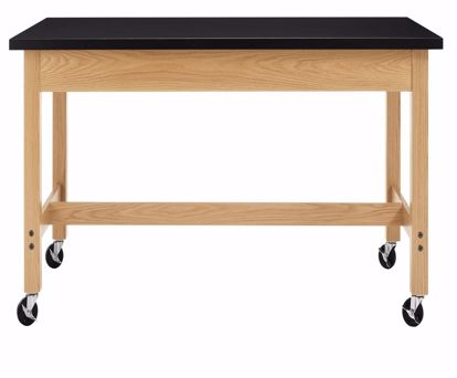 Plain Apron Tables are available in a variety of sizes, with several different top materials. These tables are built for years of dependable service. Legs and aprons are constructed of solid red oak, and are smoothly machined. They are finished with a chemical resistant, earth-friendly UV finish. Aprons are constructed of solid red oak and are 13/16"Dx4-1/2"H with heavy-duty 13-gauge steel corner braces. 2-1/4" square solid oak legs, with 5/16" hanger bolts installed, are attached to apron with nuts and washers supplied. All tables are equipped with non-skid adjustable glides for precise leveling and for prevention of rocking on uneven floors. Tables are supplied with black rubber leg boots which offer protection against scuffing and chemical spills. Standard table height is 30" with a weight capacity of 500 lbs. (Shipped KD with tops attached)