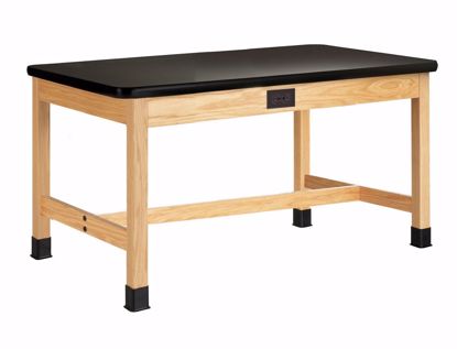 Plain Apron Tables are available in a variety of sizes, with several different top materials. These tables are built for years of dependable service. Legs and aprons are constructed of solid red oak, and are smoothly machined. They are finished with a chemical resistant, earth-friendly UV finish. Aprons are constructed of solid red oak and are 13/16"Dx4-1/2"H with heavy-duty 13-gauge steel corner braces. 2-1/4" square solid oak legs, with 5/16" hanger bolts installed, are attached to apron with nuts and washers supplied. All tables are equipped with non-skid adjustable glides for precise leveling and for prevention of rocking on uneven floors. Tables are supplied with black rubber leg boots which offer protection against scuffing and chemical spills. Standard table height is 30" with a weight capacity of 500 lbs. (Shipped KD with tops attached)