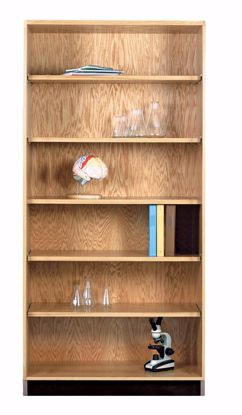 Open oak shelving allows for a clear view (two fixed/four adjustable shelves). Adjustable shelf weight capacity is 40 lbs. per square foot. A chemical resistant, earth-friendly UV finish coats the top, back and sides of each unit. Available in three widths.