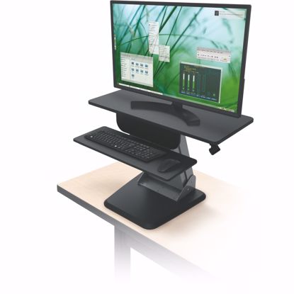 Platinum or black base adjusts in height from 23" to 30" to accommodate a variety of users and tasks. Desks stack for easy and compact storage.