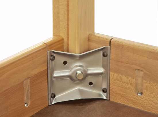 • 2-1/4" solid square legs, with 5/16" hanger bolts installed, supplied nuts and washers