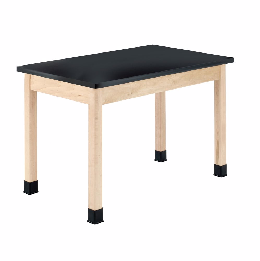 Plain Apron Tables are available in a variety of sizes, with several different top materials. These tables are built for years of dependable service. Legs and aprons are constructed of solid red oak, and are smoothly machined. They are finished with a chemical resistant, earth-friendly UV finish. Aprons are constructed of solid red oak and are 13/16"Dx4-1/2"H with heavy-duty 13-gauge steel corner braces. 2-1/4" square solid oak legs, with 5/16" hanger bolts installed, are attached to apron with nuts and washers supplied. All tables are equipped with non-skid adjustable glides for precise leveling and for prevention of rocking on uneven floors. Tables are supplied with black rubber leg boots which offer protection against scuffing and chemical spills. Standard table height is 30" with a weight capacity of 500 lbs. (Shipped KD with tops attached)