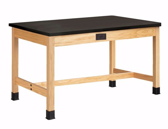 Plain Apron Tables are available in a variety of sizes, with several different top materials. These tables are built for years of dependable service. Legs and aprons are constructed of solid red oak, and are smoothly machined. They are finished with a chemical resistant, earth-friendly UV finish. Aprons are constructed of solid red oak and are 13/16"Dx4-1/2"H with heavy-duty 13-gauge steel corner braces. 2-1/4" square solid oak legs, with 5/16" hanger bolts installed, are attached to apron with nuts and washers supplied. All tables are equipped with non-skid adjustable glides for precise leveling and for prevention of rocking on uneven floors. Tables are supplied with black rubber leg boots which offer protection against scuffing and chemical spills. Standard table height is 30" with a weight capacity of 500 lbs. (Shipped KD with tops attached)