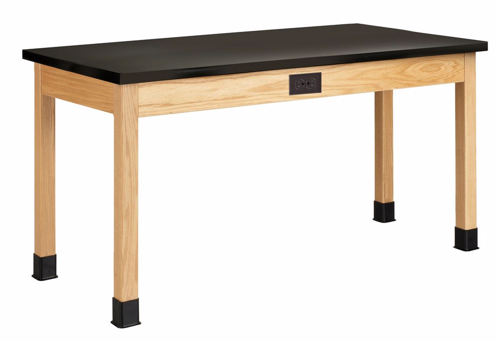 Plain Apron Tables are available in a variety of sizes, with several different top materials. These tables are built for years of dependable service. Legs and aprons are constructed of solid red oak, and are smoothly machined. They are finished with a chemical resistant, earth-friendly UV finish. Aprons are constructed of solid red oak and are 13/16"Dx4-1/2"H with heavy-duty 13-gauge steel corner braces. 2-1/4" square solid oak legs, with 5/16" hanger bolts installed, are attached to apron with nuts and washers supplied. All tables are equipped with non-skid adjustable glides for precise leveling and for prevention of rocking on uneven floors. Tables are supplied with black rubber leg boots which offer protection against scuffing and chemical spills. Standard table height is 30" with a weight capacity of 500 lbs. (Shipped KD with tops attached)