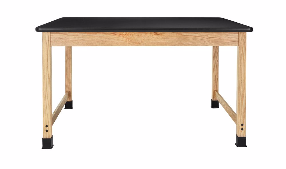 Plain Apron Tables are available in a variety of sizes, with several different top materials. These tables are built for years of dependable service. Legs and aprons are constructed of solid red oak, and are smoothly machined. They are finished with a chemical resistant, earth-friendly UV finish. Aprons are constructed of solid red oak and are 13/16"Dx4-1/2"H with heavy-duty 13-gauge steel corner braces. 2-1/4" square solid oak legs, with 5/16" hanger bolts installed, are attached to apron with nuts and washers supplied. All tables are equipped with non-skid adjustable glides for precise leveling and for prevention of rocking on uneven floors. Tables are supplied with black rubber leg boots which offer protection against scuffing and chemical spills. Standard table height is 30" with a weight capacity of 500 lbs. (Shipped KD with tops attached)