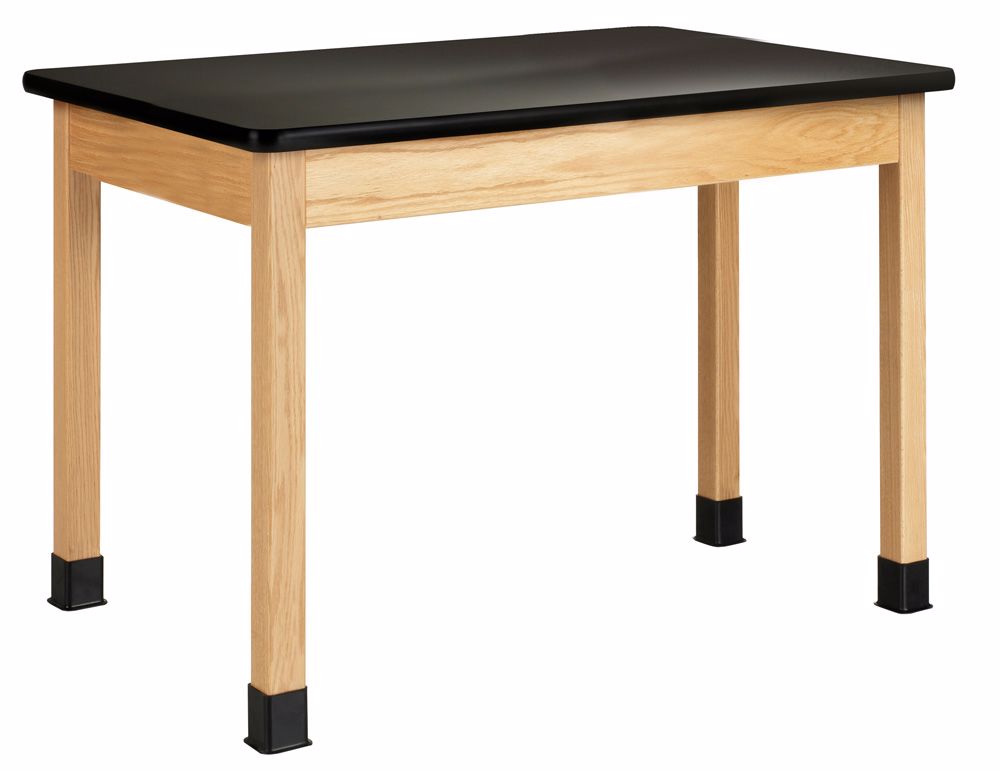 Plain Apron Tables are available in a variety of sizes, with several different top materials. These tables are built for years of dependable service. Legs and aprons are constructed of solid red oak, and are smoothly machined. They are finished with a chemical resistant, earth-friendly UV finish. Aprons are constructed of solid red oak and are 13/16"Dx4-1/2"H with heavy-duty 13-gauge steel corner braces. 2-1/4" square solid oak legs, with 5/16" hanger bolts installed, are attached to apron with nuts and washers supplied. All tables are equipped with non-skid adjustable glides for precise leveling and for prevention of rocking on uneven floors. Tables are supplied with black rubber leg boots which offer protection against scuffing and chemical spills. Standard table height is 30" with a weight capacity of 500 lbs. (Shipped KD with tops attached)