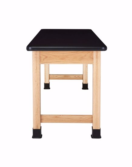 Plain Apron Tables are available in a variety of sizes, with several different top materials. These tables are built for years of dependable service. Legs and aprons are constructed of solid red oak, and are smoothly machined. They are finished with a chemical resistant, earth-friendly UV finish. Aprons are constructed of solid red oak and are 13/16"Dx4-1/2"H with heavy-duty 13-gauge steel corner braces. 2-1/4" square solid oak legs, with 5/16" hanger bolts installed, are attached to apron with nuts and washers supplied. All tables are equipped with non-skid adjustable glides for precise leveling and for prevention of rocking on uneven floors. Tables are supplied with black rubber leg boots which offer protection against scuffing and chemical spills. Standard table height is 30" with a weight capacity of 500 lbs. (Shipped KD with tops attached)