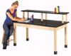 Perfect table for STEAM projects. We’ve taken our popular oak and maple science tables and enhanced them by adding a riser. The table features solid oak or maple (your choice) aprons and riser supports finished with a chemical resistant finish. The riser has 10" clearance above the work surface and is 12"D and made of the same material as the top you choose. Top options include: plastic laminate, chemical resistant laminate, phenolic resin and epoxy resin. All 72"W tables include leg braces and a stretcher for added strength. Tables stand 30"H. The top of the riser is 41" from the floor.