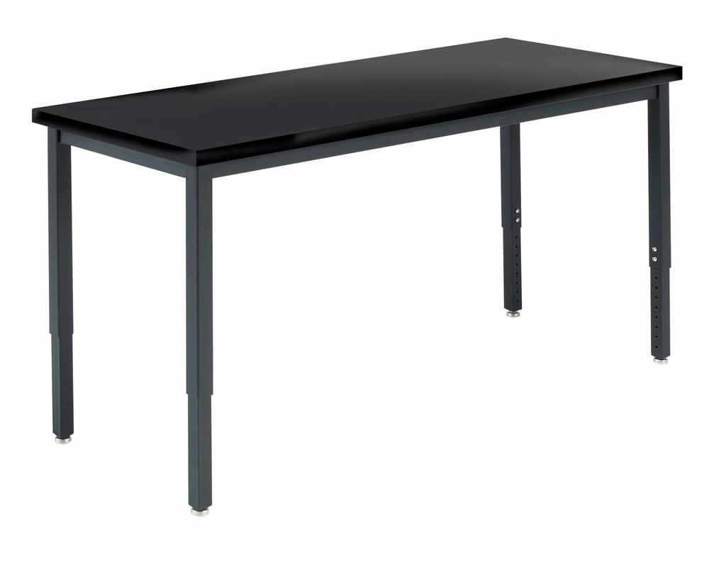 Looking for a metal table that is strong enough for a phenolic resin top? We've got it. The 1" x 2", 16 gauge apron frame is attached to either a phenolic resin, chemical resistant laminate or a plastic laminate top. The frame can have either 14 gauge 30"H fixed legs (fixed height) or 14 gauge outer tube with a 16 gauge insert legs that range from 23.5-37.5"H (adjustable height). Legs are 1-1/4" square. Color: Black