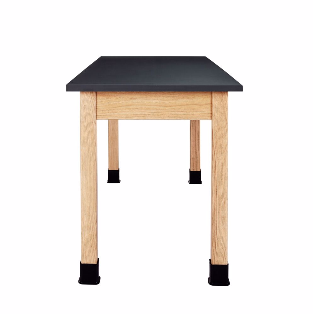 Plain Apron Tables are available in a variety of sizes, with several different top materials. These tables are built for years of dependable service. Legs and aprons are constructed of solid red oak, and are smoothly machined. They are finished with a chemical resistant, earth-friendly UV finish. Aprons are constructed of solid red oak and are 13/16"Dx4-1/2"H with heavy-duty 13-gauge steel corner braces. 2-1/4" square solid oak legs, with 5/16" hanger bolts installed, are attached to apron with nuts and washers supplied. All tables are equipped with non-skid adjustable glides for precise leveling and for prevention of rocking on uneven floors. Tables are supplied with black rubber leg boots which offer protection against scuffing and chemical spills. Standard table height is 30" with a weight capacity of 500 lbs. (Shipped KD with tops attached)