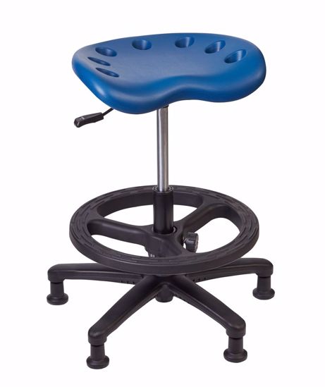 Stand out with our tractor style seating that combines form and function. These ergonomic stools are constructed from rugged polyurethane that is self-skinning, chemical- and puncture-resistant, and fully washable. They easily adjust in height with a smooth pneumatic circle adjustment. They come standard with black non-marring glides, but optional non-locking casters are available with a weight capacity of 300 lbs. All backed by a 15-year warranty—lifetime on the pneumatic lift. Stool color: Blue. Height adjustment: 21" - 28"H