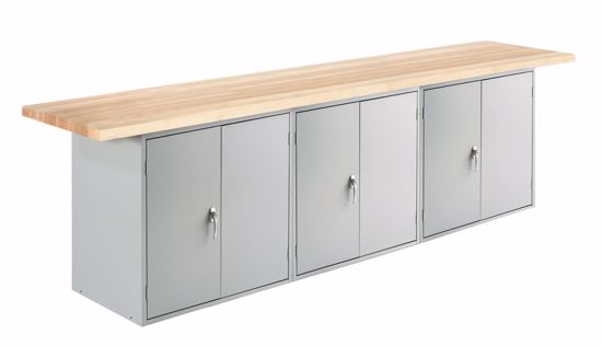 This series offers 1-3/4" maple tops and 4 bench lengths and 3 locker styles to choose from. The all-welded, 1-section construction has reinforced side panels (20-gauge). Locker doors (18-gallon) have air vents, spring hinges, padlock hasp & knockout plug for cylinder lock. Choose between vertical lockers, horizontal lockers or double door bases. Your choice of black or gray baked enamel finish. Counter tops need to be attached during assembly. 32-3/4"H.